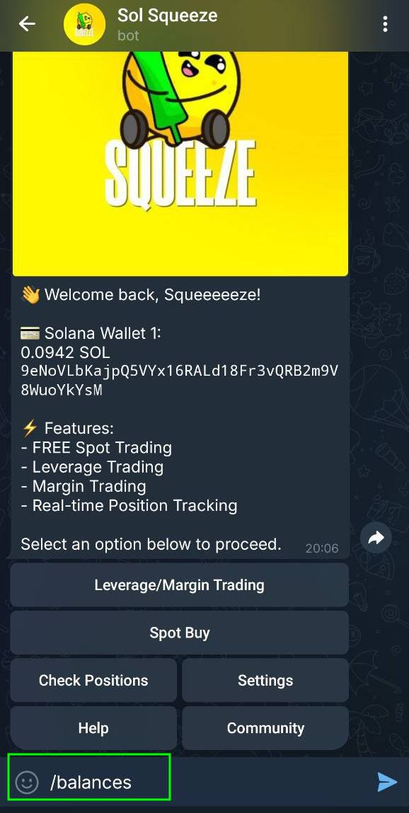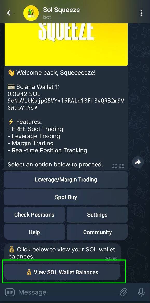, select View SOL Wallet Balances. - The bot will display your available wallets and their balances.